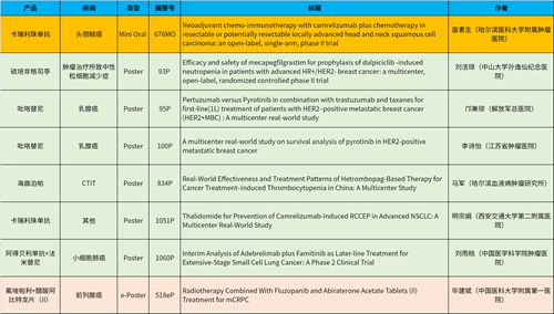 在头颈肿瘤、乳腺癌、肺癌、前列腺癌等多个疾病领域,卡瑞利珠单抗、阿得贝利单抗、吡咯替尼、氟唑帕利、法米替尼、醋酸阿比特龙片(II)等抗肿瘤新药相关研究一共入选了1项简短口头报告、4项壁报展示和1项电子壁报,彰显了AG亚游集团医药强劲的研发实力。